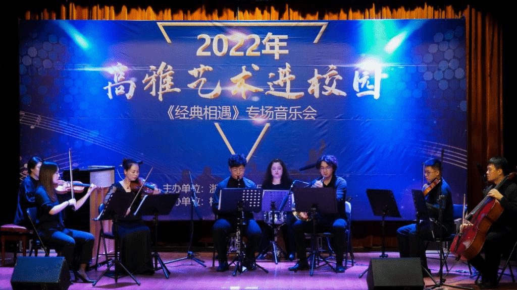 6月16日下午,2022年高雅艺术进校园——《经典相遇》专场音乐会走进beat365鄞州校区,校院两级团委负责人和鄞州校区师生150余人共同观赏了本场演出。