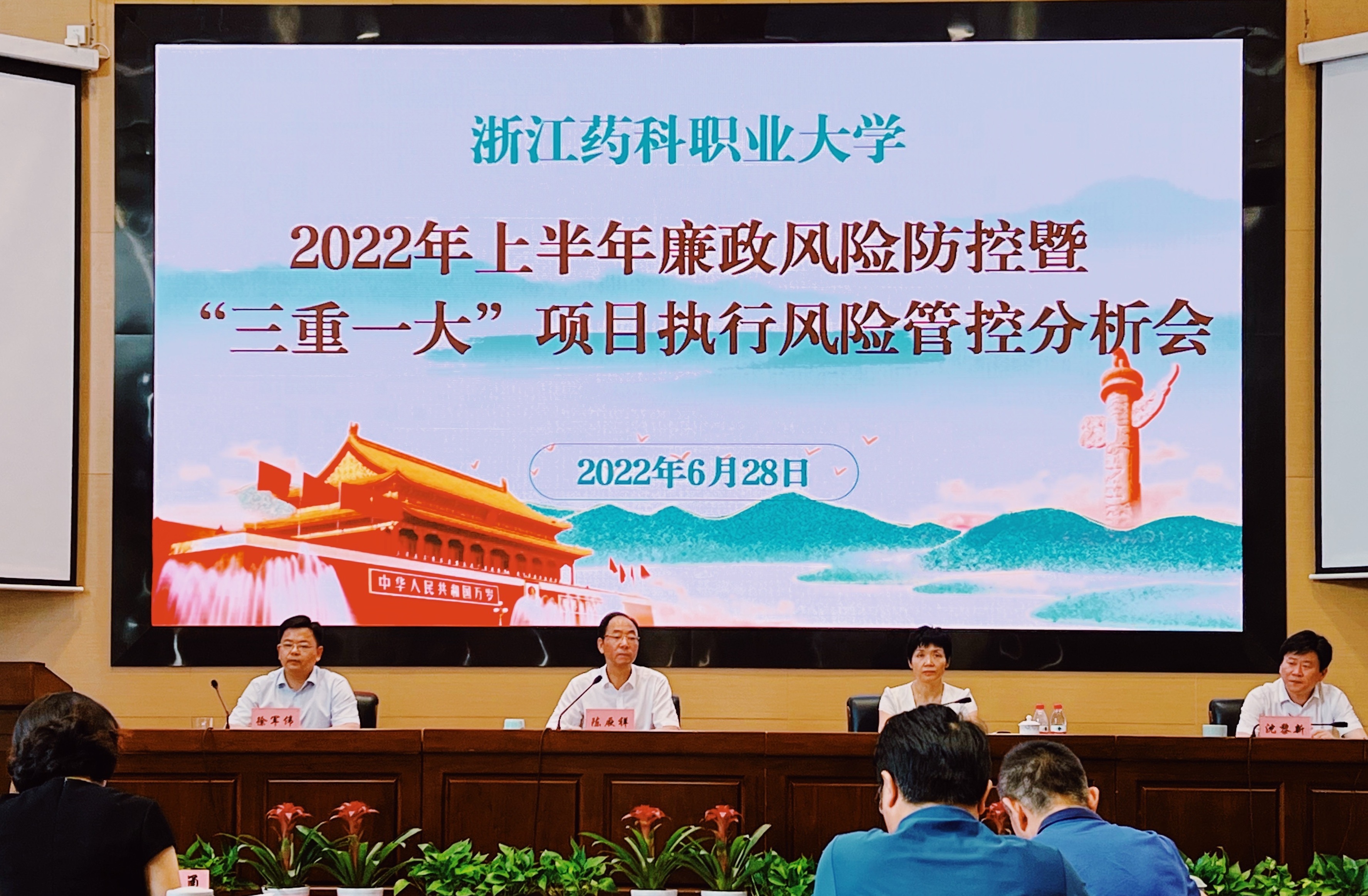 为加强学校党风廉政建设和反腐败工作,净化校园政治生态,持续推进“清廉beat365”建设。6月28日,学校召开2022年上半年廉政风险防控暨“三重一大”项目执行风险管控分析会。校党委书记陈厥祥,党委副书记、校长娄小娥,党委副书记杨俊杰,纪委书记、监察专员徐军伟,党委委员、副校长许莉勇、沈忠华、沈黎新,党委委员韩忠培、张佳佳,全体中层干部、专业负责人、项目负责人和重点领域重点岗位人员参加会议,会议由徐军伟主持。