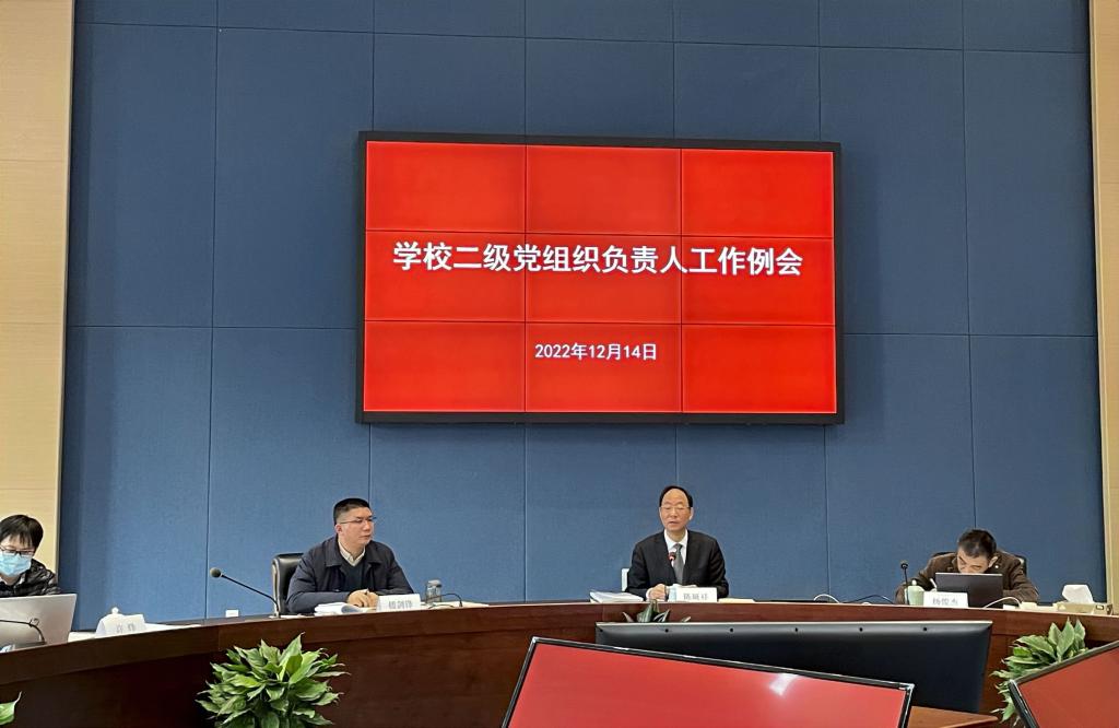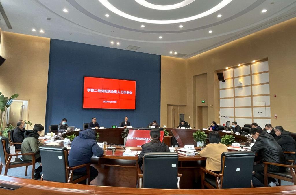 12月14日下午,学校在奉化校区行政楼召开了二级党组织负责人工作例会。校党委书记陈厥祥,党委副书记杨俊杰,党委委员、组织部部长楼剑锋,以及组织部、宣传部相关人员,二级党组织负责人参加了会议,会议由杨俊杰主持。