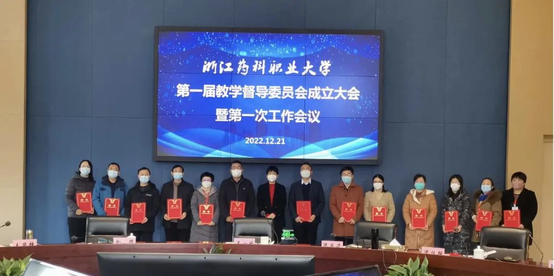 沈忠华宣读《beat365正版唯一官网关于成立教学督导委员会的通知》及委员名单,副主任委员金辉和沈佳强及校外督导委员、美康生物科技股份有限公司行政人事总监陈霜霜先后作了表态发言:将严格按照章程认真履职尽责,做好督教、督管、督学工作,促进学校人才培养水平不断提升。校长娄小娥为与会委员颁发证书。
