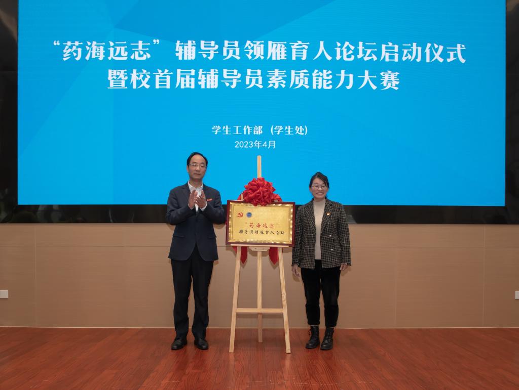 论坛仪式上,校党委书记陈厥祥为“药海远志”辅导员领雁育人论坛进行了揭牌,党委副书记杨俊杰进行了授旗。陈厥祥在致辞中对学校思想政治工作和辅导员队伍建设取得的成效给予了高度评价,并对一流辅导员队伍建设提出了发展三问“辅导员是什么人”“辅导员怎么做”“辅导员做什么”。一要自信,牢固树立职业教育、职业本科的道路自信。2023年,也是学习贯彻党的二十大精神开局之年,学校进一步明确建设医药特色鲜明的一流职业本科大学,突出务本强校创一流发展主线,构建“一体两翼三高地”发展格局,实现职业本科赛道上直道领跑。全体辅导员要深入学习贯彻党的二十大精神和习近平总书记关于职业教育的重要论述,要增强作为全国第一所药科类职业本科大学辅导员的身份自信,树立远大理想和崇高追求,在直道领跑中争做领头雁,为学校一流建设添砖加瓦。二要自强,着力提高为党育人、为国育才的能力本领。辅导员要始终秉持对党的教育事业高度负责的态度,以习近平新时代中国特色社会主义思想和党的二十大精神为指导,积极投身到学校一流职业本科大学建设、一流强院建设和一流辅导员队伍建设中来,积极参加政治理论学习和专业素质提升,不断增强育人育才的能力和水平,努力成为政治强、情怀深、思维新、视野广、自律严、人格正的思政辅导员,做学生为人为学表率、可亲可敬又深受学生喜爱的人师辅导员和教有技巧、导有方法的专家辅导员,为学生精神成人、技能成才、全面发展铺路架桥。三要自省,时刻保持勤奋清廉、真抓实干的本色作风。党的领导是学校事业健康发展的根本保障,辅导员队伍是党的队伍,也是百分百党员队伍,要按照全面从严治党的要求和清廉beat365建设部署,坚持党建引领一流队伍建设。同时辅导员要有勤勉踏实、善作善成的作风,要注重调研,多下寝室、班级,走到学生中间去,为学生答疑解惑、纾困解难,真正做到以生为本、育人育才。