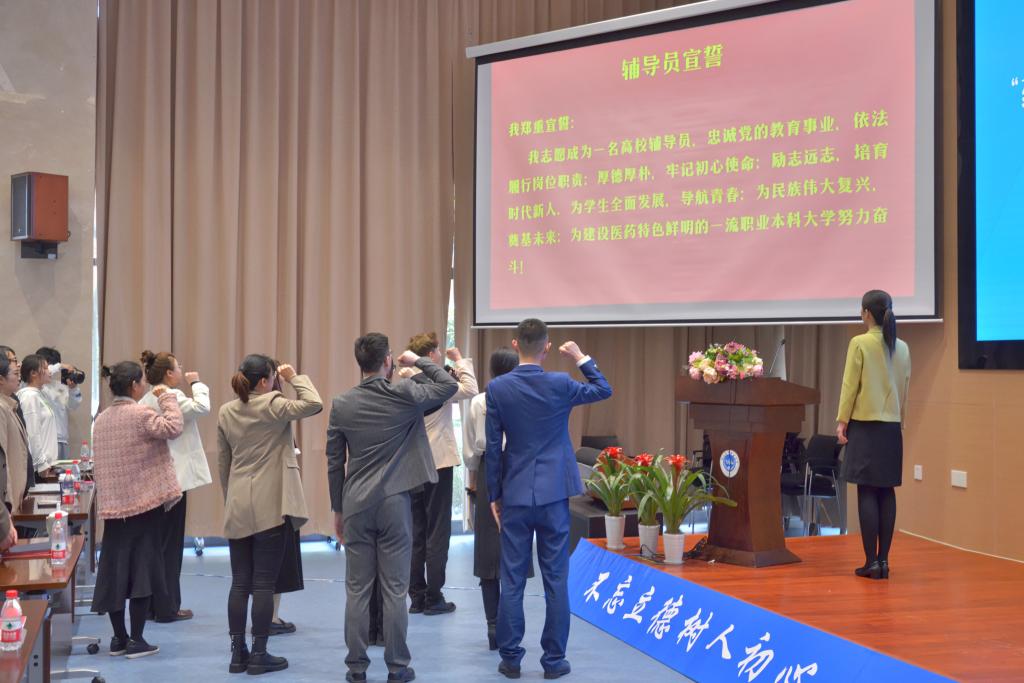 “我志愿成为一名高校辅导员,忠诚党的教育事业,依法履行岗位职责;厚德厚朴,牢记初心使命;励志远志,培育时代新人。为学生全面发展,导航青春;为民族伟大复兴,奠基未来;为建设医药特色鲜明的一流职业本科院校努力奋斗!”启动仪式上,全体辅导员通过宣誓进一步增强了职业认同感,加深了高校辅导员作为学生成长成才人生导师的责任感和使命感的理解。