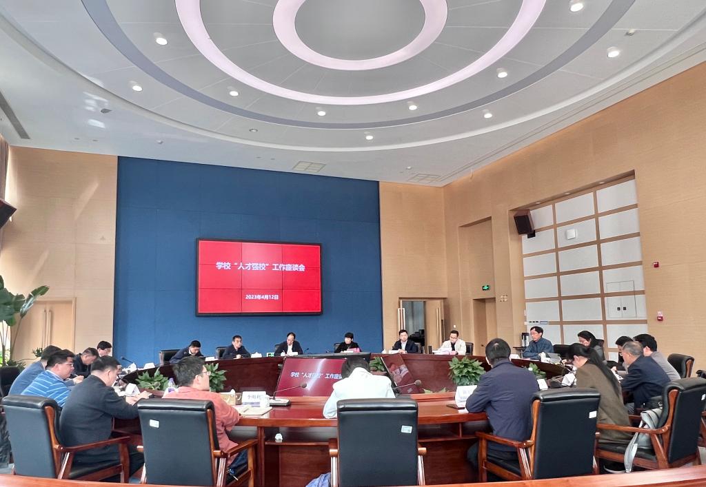为扎实开展学习贯彻习近平新时代中国特色社会主义思想主题教育,深入学习贯彻习近平总书记关于人才工作的相关重要论述,全面推进学校职业本科建设的“人才强校”战略实施,4月12日下午,学校“人才强校”工作座谈会在奉化校区行政楼举行,校党委书记陈厥祥,校长娄小娥,党委副书记杨俊杰,纪委书记徐军伟,党委委员、组织部(人才办)部长(主任)楼剑锋,党委委员、人事处(教师工作部)处长(部长)戴桂平等领导,以及学校享受国务院特殊津贴、省市领军拔尖人才、省级优秀教师、正高职称等教师代表参加了座谈会。