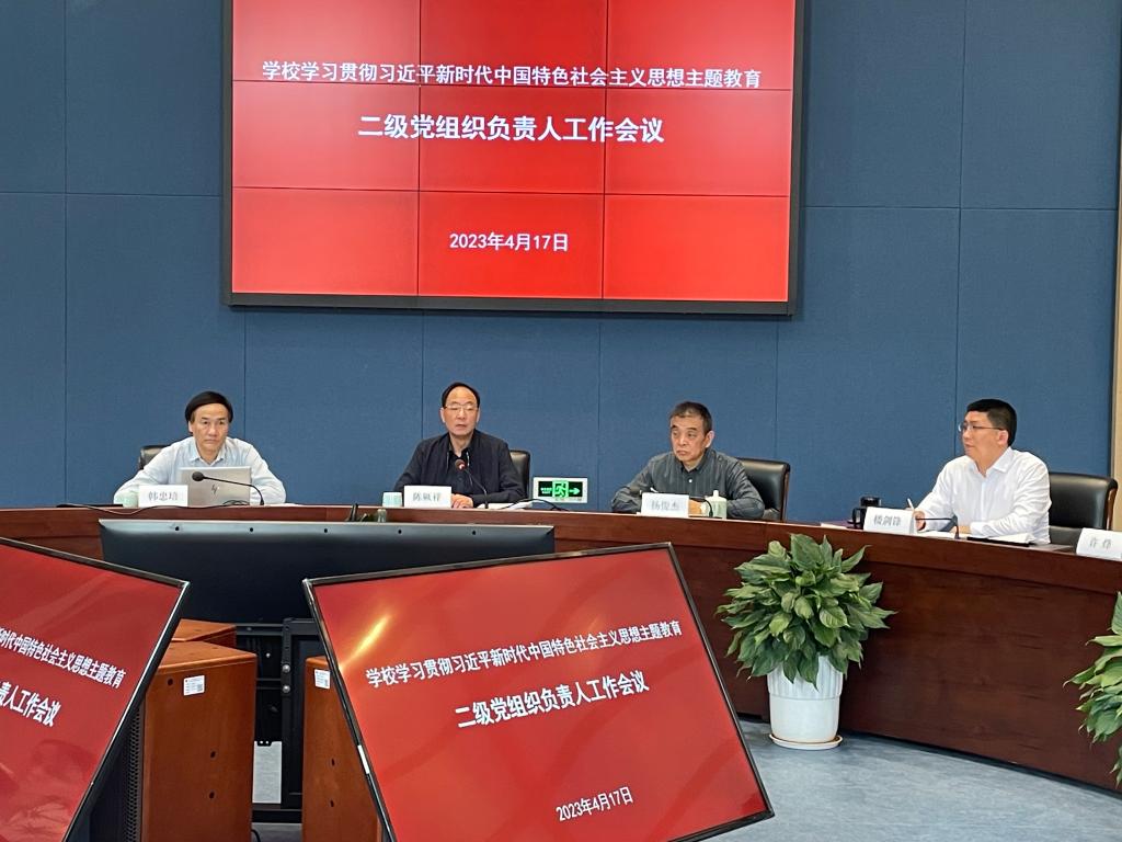 为扎实开展学习贯彻习近平新时代中国特色社会主义思想主题教育,以高标准和严要求落细落实各项任务,积极推动学校主题教育走深走实。4月17日下午,校党委书记陈厥祥在奉化校区主持召开了学校主题教育二级党组织负责人工作会议,校党委副书记杨俊杰,党委委员、宣传部(统战部)部长韩忠培,党委委员、组织部部长楼剑锋等领导,校办、组织部、宣传部相关人员,以及二级党组织负责人参加了会议。
