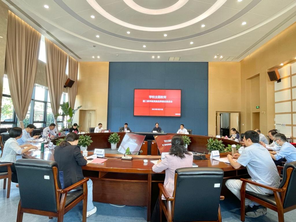 为扎实推进主题教育,进一步深化二级学院党建“一院一品”工作,以及学校“1+10+2+N”党建矩阵品牌建设。 5月25日下午,学校主题教育暨二级学院党建工作品牌建设推进会在奉化校区行政楼举行,校党委书记陈厥祥,党委副书记杨俊杰,党委委员、组织部部长楼剑锋,各二级党组织负责人,五星级基层党组织代表,主题教育办相关负责人等参加了会议,会议由杨俊杰主持。
