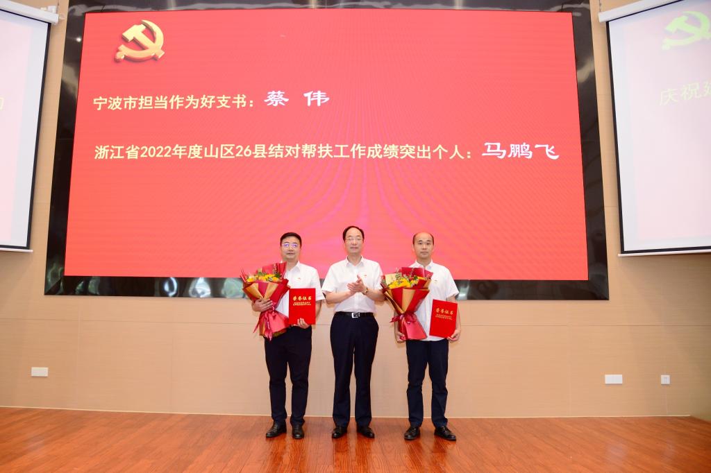 会上,与会领导分别为“宁波市担当作为好支书”蔡伟、“浙江省2022年度山区26县结对帮扶工作成绩突出个人”马鹏飞;以及6个先进基层党组织,优秀党务工作者、优秀共产党员代表等颁奖。教师新党员进行了入党宣誓,全体党员也一起重温了入党誓词。