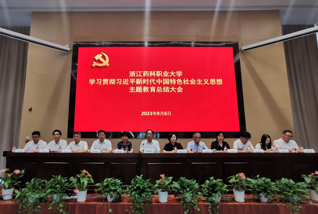 会上,校党委书记陈厥祥在《学思践悟铸忠诚 实干争先强担当》的总结讲话中指出,学校党委严格按照党中央和省委的决策部署,在省委主题教育第一巡回指导组的精心指导下,牢牢把握“学思想、强党性、重实践、建新功”的总要求,紧扣“务本强校创一流”发展主线,聚焦“一体两翼三高地”建设目标,紧密结合学校实际统筹谋划、系统推进,把理论学习、调查研究、推动发展、检视整改、建章立制等各方面融会贯通,全校各级党组织和全体党员干部激扬主题、感恩图强,全面推进学校事业创新深化、改革攻坚和开放提升,达到了预期目标,取得了重要成果。一是坚持政治引领,切实履行主体责任。以高度的政治自觉,坚定捍卫“两个确立”,坚决做到“两个维护”,把高质量组织开展主题教育作为首要政治任务来抓,以最讲党性、最讲政治、最讲忠诚、最讲担当全面落实主体责任。二是抓好理论学习,筑牢思想信念根基。以时任浙江省委书记、省人大常委会主任的习近平同志在学校建校20周年发来的贺信为牵引,构建“六学”联动机制,将理论学习贯穿主题教育始终。三是聚焦职业大学,全面开展调查研究。把调查研究作为破解办学治校瓶颈难题的“有力武器”,综合运用“深、实、细、准、效”的方法,完善上下贯通、系统联动、一体推进的调研工作体系,在察实情、出实招、求实效上下功夫。四是注重学做结合,推动学校事业发展。坚持学思用贯通、知信行统一,把开展主题教育同建设医药特色鲜明的一流职业大学目标任务有机结合起来。五是深入检视问题,狠抓整治整改落实。发扬刀刃向内的自我革命精神,坚持边学习、边对照、边检视、边整改,把整治整改贯穿主题教育始终。