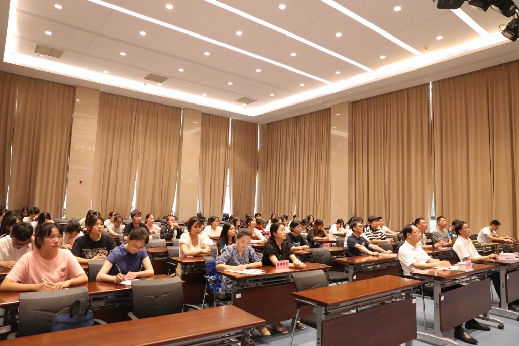 讲座前,校党委书记陈厥祥与於贤德教授进行了亲切交流,对於教授来校讲学表示欢迎,并对於教授终身致力于文艺美学研究表示赞赏。宣传部、体训部负责人,教师及学生代表共100余人聆听讲座。