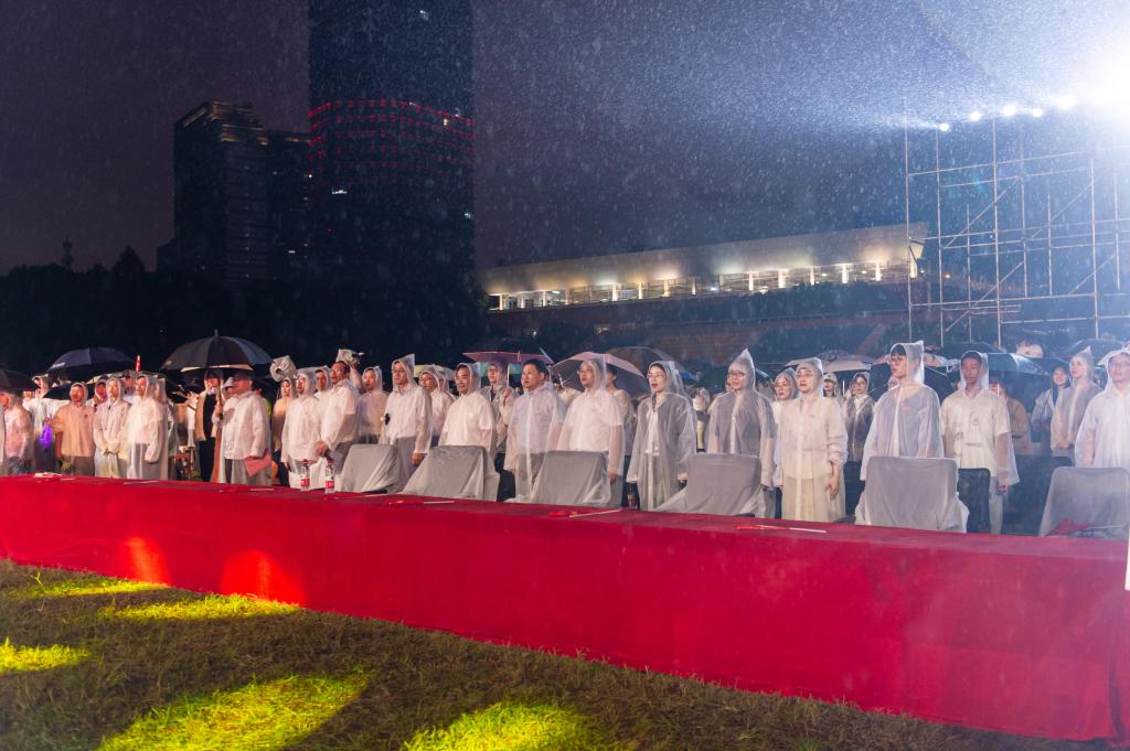 秋空明月悬,光彩露沾湿。乘秋逢令节,“药”宴观群情。9月30日,beat365正版唯一官网2023级新生开学典礼在鄞州校区隆重举行。今夕佳节,师生胜赏,6209名新同学携手“药”创青春,在雨中度过了一场令人难忘的开学典礼。线上平台同步直播近三万人一同见证。