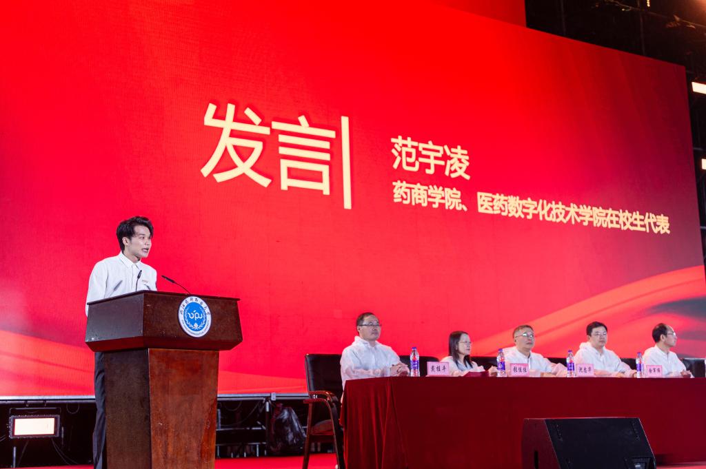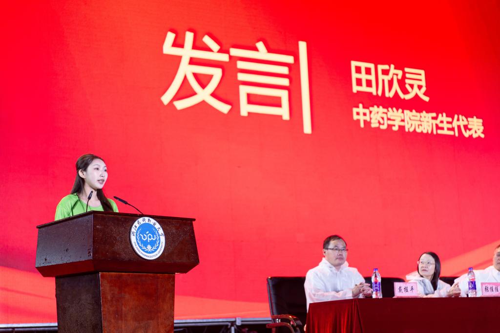 在校生代表、药商学院2022级药品质量管理专业范宇凌用“与学习交朋友,向实践求真知,为强校践初心”分享了她在beat365正版唯一官网成长的秘诀与经验,鼓励学弟学妹不忘初心,方得始终,以砥砺奋斗的beat365行动书写一流,为强校有我的无悔青春引吭高歌。新生代表、中药学院2023级中药制药专业田欣灵发言,表示将秉承脚踏实地、勤勉奋进的精神,努力为学校建设一流职业大学挺膺担当。