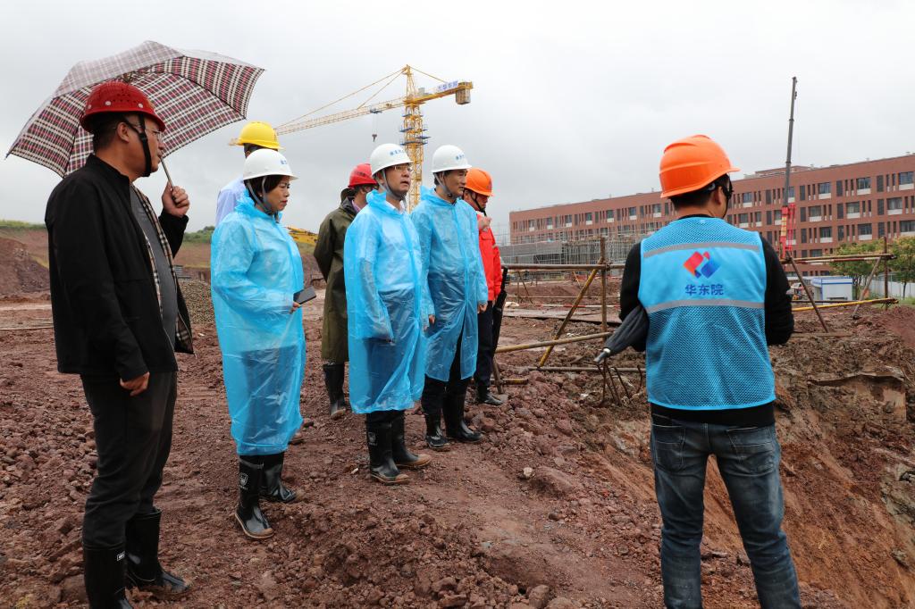 10月7日是节后上班第一天,校党委书记陈厥祥、副校长许莉勇,党委委员、宣传部(统战部)部长韩忠培一行冒雨深入学校医药类产教融合公共实训基地项目工程现场,亲切慰问项目部及工程指挥部全体人员、施工人员,检查指导、关心推动工程建设工作。学校办公室、宣传部、校园建设处、保卫处等有关部门负责人,工程项目总承包单位、监理、全咨询等参建单位负责人参加。
