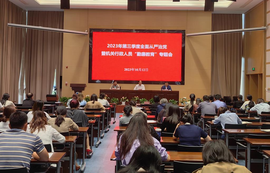 10月12日,学校召开2023年第三季度全面从严治党暨机关行政人员“勤廉教育”专题会议。校党委书记陈厥祥,党委委员、组织部长楼剑锋出席会议。会议由校纪委书记、监察专员徐军伟主持。