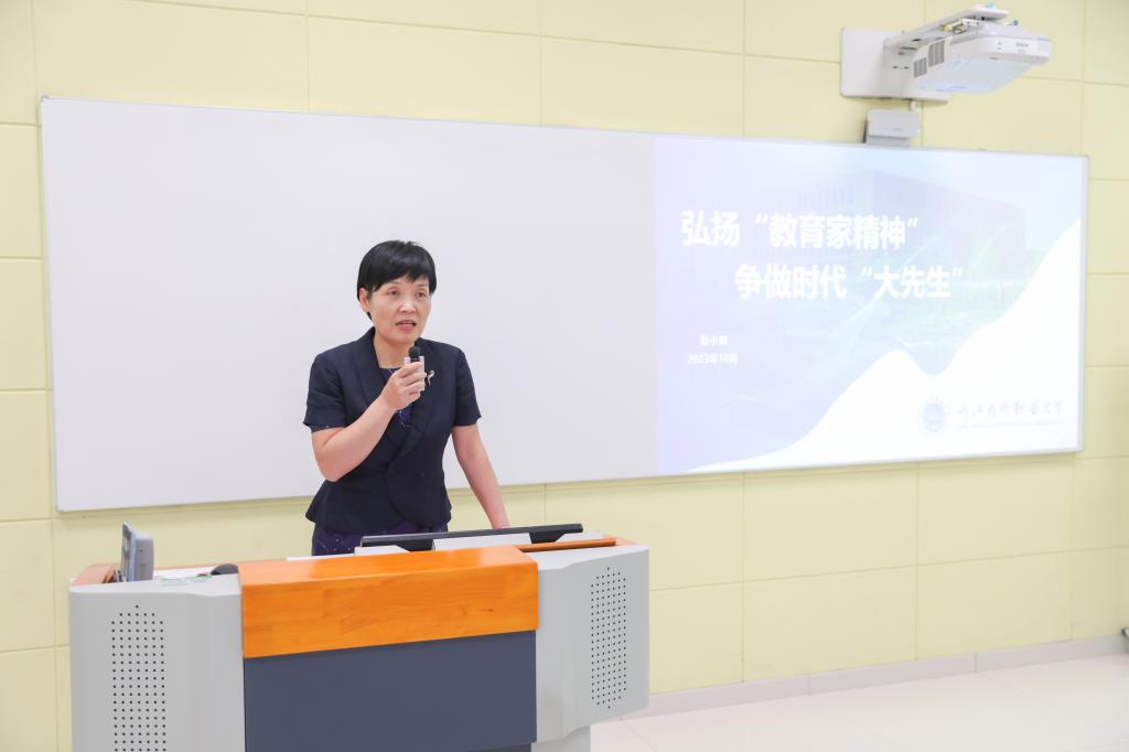 合影留念后,即开展青蓝工程中的教学训练营活动。校长娄小娥为青年教师们作第一讲。题为“弘扬‘教育家精神’,争做时代‘大先生’”的培训第一讲。她从三个方面来开展本次培训:一、认识beat365三秩春秋学校类型教育特色发展跨越提升,经过37年的办学历程,beat365紧密对接“健康中国”国家战略,以大健康产业需求为引领,立足浙江,辅射全国,坚定职业本科教育类型定位。二、药道同行勇担使命与beat365高质量发展共生共荣,坚守医药行业办学特色,坚持产教融合办学路径,打造“三色·三药·三能”人才培养模式,培养“厚药德,明药规,强药技、懂智造、接国际、能创新”的高素质医药类技术技能人才,努力建设医药特色鲜明的一流职业本科大学。三、药大先生躬耕教坛以教育家精神做时代的大先生,以习近平总书记对教师的殷切期望为指引,要求青年教师以教育家为榜样,大力弘扬教育家精神,牢记为党育人、为国育才的初心使命,树立“躬耕教坛、强国有我”的志向和抱负,自信自强、踔厉奋发,为强国建设、民族复兴伟业作出新的更大贡献。同时应该有言为士则、行为世范的自觉,不断提高自身道德修养,以模范行为影响和带动学生,做学生为学、为事、为人的大先生,成为被社会尊重的楷模,成为世人效法的榜样。