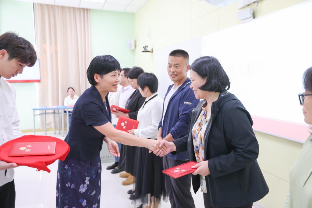 校长娄小娥为指导教师代表颁发了聘书,鲜红的聘书承载着学校对指导教师们的信任与重托,承载着对青年教师们的鼓励与希望。