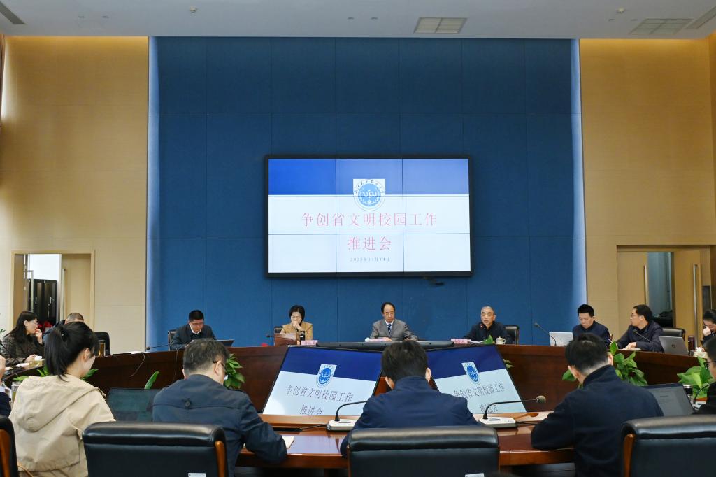 会上,杨俊杰对学校争创省文明校园工作情况作了进一步说明和部署,强调要全面动员、人人参与;明确责任、落实任务;密切配合、协同作战,并就创建工作档案整理、特色品牌凝练等提出了具体要求,要求各责任部门、二级学院严格认真对照考核内容、评分要点进一步对标找差,确保将工作任务落到实处。