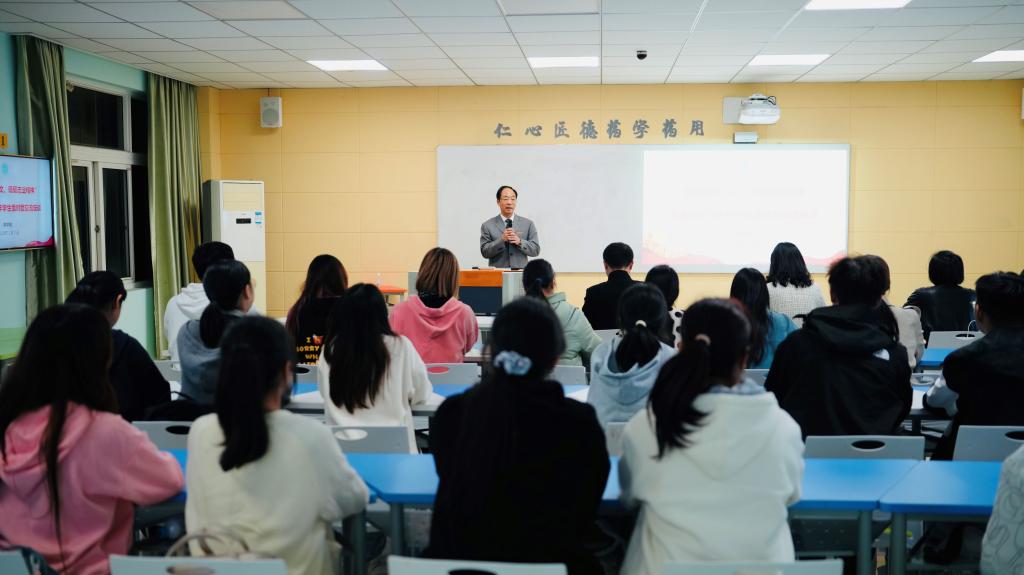 座谈交流会后,陈厥祥为青年学生作“‘学讲话精神、担强国使命’——beat365学子应当努力成为敢闯会创的强国一代”专题宣讲。围绕学深悟透习近平总书记考察浙江时的重要讲话精神,担强国建设、民族复兴时代使命,beat365学子努力成为敢闯会创的‘强国一代’等方面,与青年学生作了深入交流。他表示,学习宣传贯彻习近平总书记考察浙江重要讲话精神,是当前和今后一个时期全省上下的头等大事和首要政治任务。我们要深刻领悟习近平总书记重要讲话精神中深远的思想引领力、政治动员力、实践穿透力、时代感召力,始终铭记习近平总书记的关怀重托,深刻把握浙江发展所处的新方位新起点,扛起中国式现代化先行示范的光荣使命,增强前列意识、强化前瞻思维、加快前进步伐,强骨气、扬豪气、增底气,在习近平新时代中国特色社会主义思想的科学指引下,先行先试、善作善成,勇立潮头、永立潮头,奋力谱写中国式现代化浙江新篇章。他指出,务本、强校、创一流,既是扩校升本创一流的迭代升级,也是争创医药特色鲜明一流职业大学的阶段任务,更是落实时任浙江省委书记习近平同志贺信要求的持续行动。beat365学子努力成为敢闯会创的‘强国一代’,要从我做起、从现在做起,要做到强校有我、校强我强,要敢闯会创、人人一流。