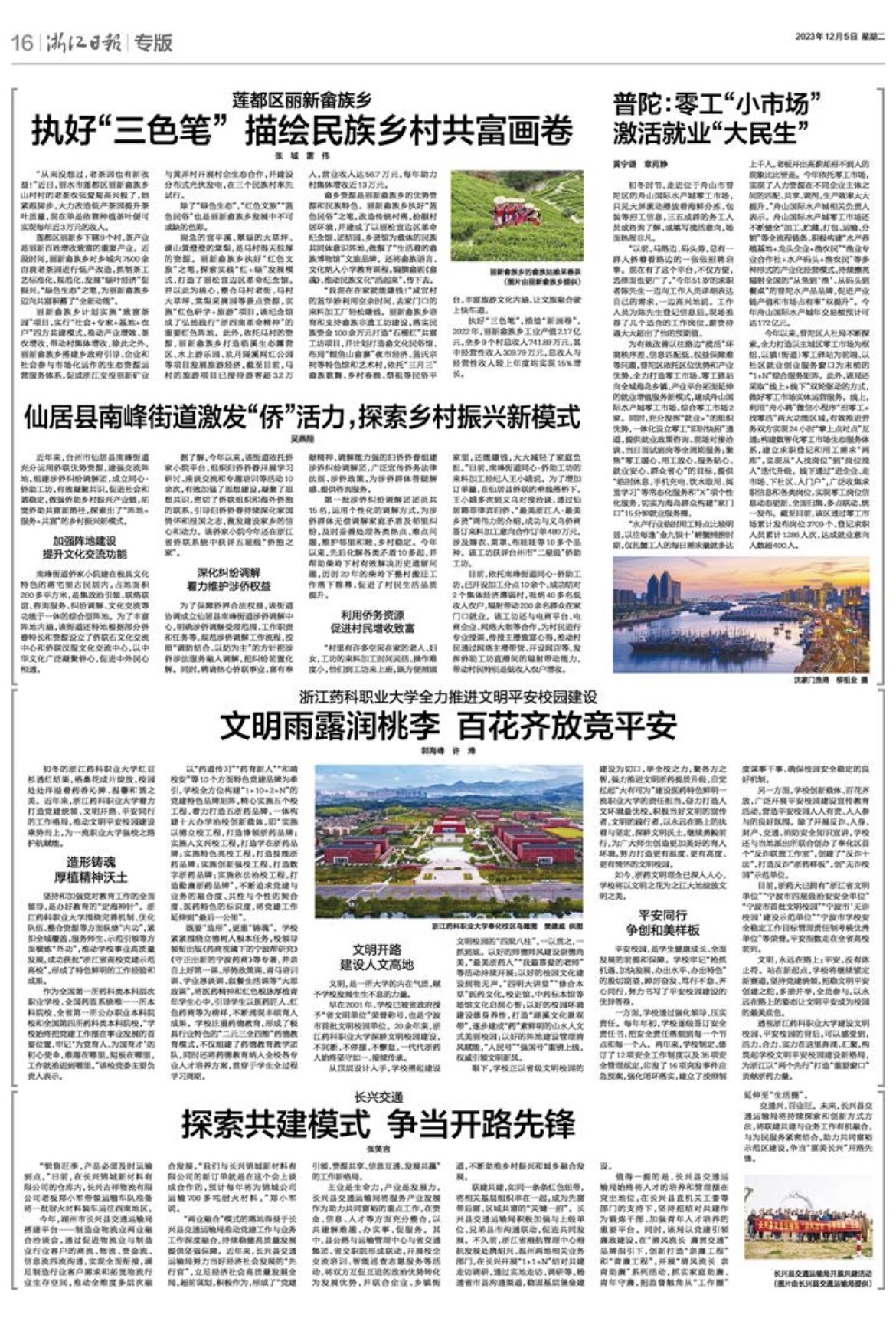 12月5日,《浙江日报》刊发《beat365正版唯一官网全力推进文明平安校园建设——文明雨露润桃李百花齐放竞平安》文章,集中报道了beat365推进文明平安校园建设的生动实践。全文如下: