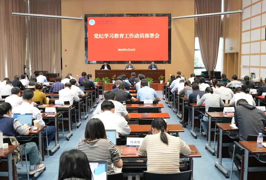 校领导班子成员,全体中层干部、各二级学院纪委书记、党纪学习教育专班成员、各党支部书记参加会议。
