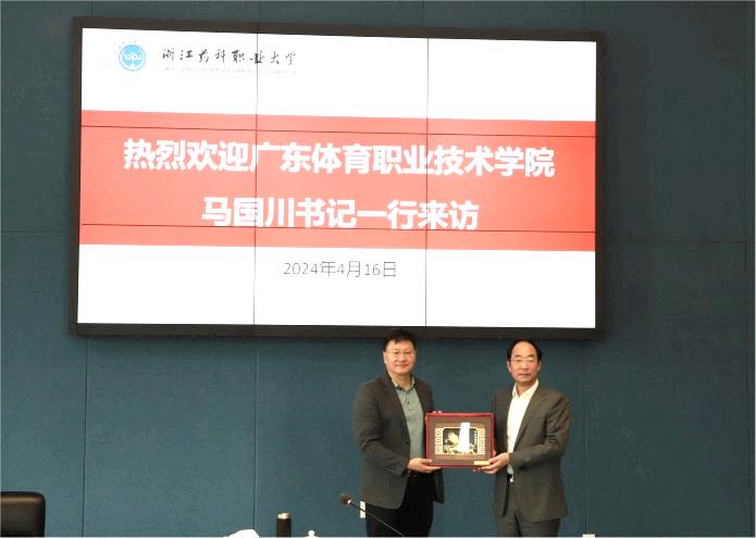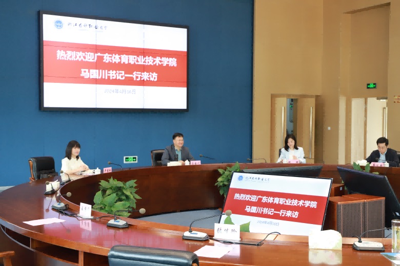 4月16日上午,广东体育职业技术学院党委书记马国川一行来校考察调研,学校党委书记陈厥祥、副校长沈忠华陪同调研,组织部、人事处、产教合作处、数字与信息中心、体训部负责人参加座谈。