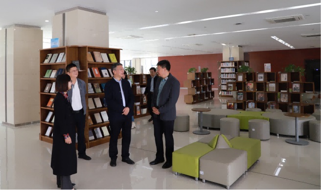 会后,沈忠华及相关人员陪同马国川书记一行参观图书馆。
