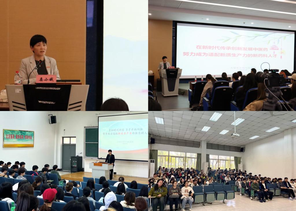 4月9日,娄小娥又以《在新时代传承创新发展中医药,努力成为适配新质生产力的新药科人才》为题,专门为中药学院学生授课,中药学院160名学生参加。娄校长首先对中医药新质生产力进行了阐释,并结合中医药领域的创新案例说明了“新质生产力已经在实践中形成”。随后从中医药领域新质生产力产业发展、中医药加快海外布局、国际化取得重大突破以及国家新时期中医药产业就业人才供需现状分析等方面详细介绍了新质生产力对新质中医药产业人才的需求,明确了新质生产力助推中医药产业高质量发展的重要价值,为中药学子指明了努力方向和未来就业方向。