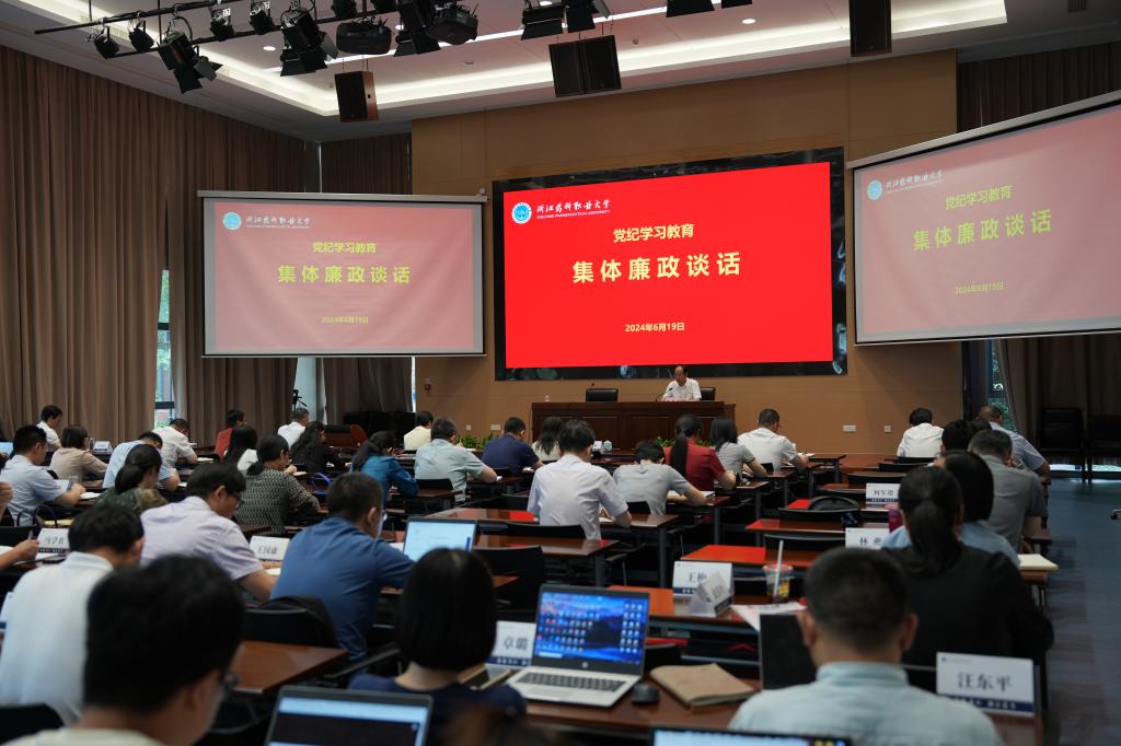 常态化开展廉政谈话是加强党内监督的一项重要制度,是学校党委履行全面从严治党主体责任的具体举措,是健全完善干部监督管理机制的重要举措,也是落实落细政治监督,维护风清气正教书育人环境的具体措施。6月19日下午,校党委书记陈厥祥以集体谈话的方式,对领导班子成员、全体中层干部、党纪学习教育专班成员、各二级学院纪委书记进行廉政谈话。