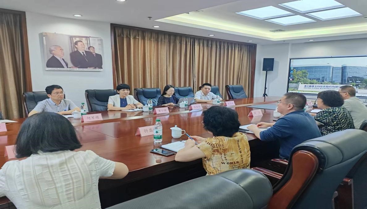 浙江普康生物技术股份有限公司董事长毛子安热情欢迎娄校长一行的到访。娄校长介绍了学校专业特色、人才培养模式、学科优势及近年来的发展情况。她表示,希望以此次“访企拓岗促就业”走访行动为契机,主动向企业问需,进一步加强校企合作,拓宽合作渠道,通过建立就业基地、实习基地等方式,联合培养疫苗制品方向高素质人才、促进毕业生更高质量更充分就业。浙江普康生物股份有限公司相关负责人介绍了企业的发展历程、新产品研发、行业地位、未来发展目标等情况,对学校取得的成绩表示衷心的祝贺,并表示将继续支持学校的建设和发展。双方就疫苗制品人才需求、校企师资共享、课程共建等方面进行了深入交流研讨。双方表示,将发挥各自优势,建立常态化交流互动机制,努力实现供需精准对接、产教融合发展的共赢局面。