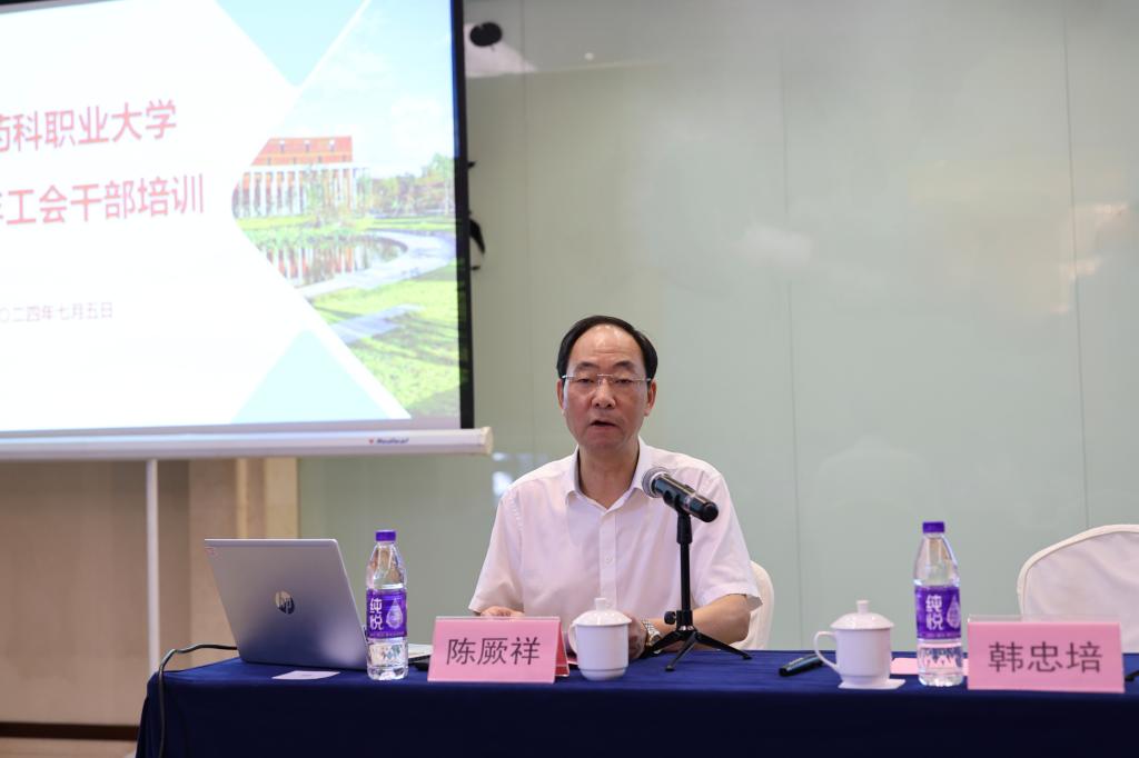 为进一步提升学校工会专兼职干部职业素养和业务能力,不断服务学校高质量发展,7月5日上午,学校在余姚开展2024年工会干部培训会,培训会特别邀请了浙江大学原党委常委、统战部部长、原工会主席楼成礼研究员作专题讲座。校党委书记陈厥祥出席会议,校工会委员、分工会委员、经审委委员以及工会财务干部等40余人参加了此次培训会。培训会由党委副书记、工会主席韩忠培主持。