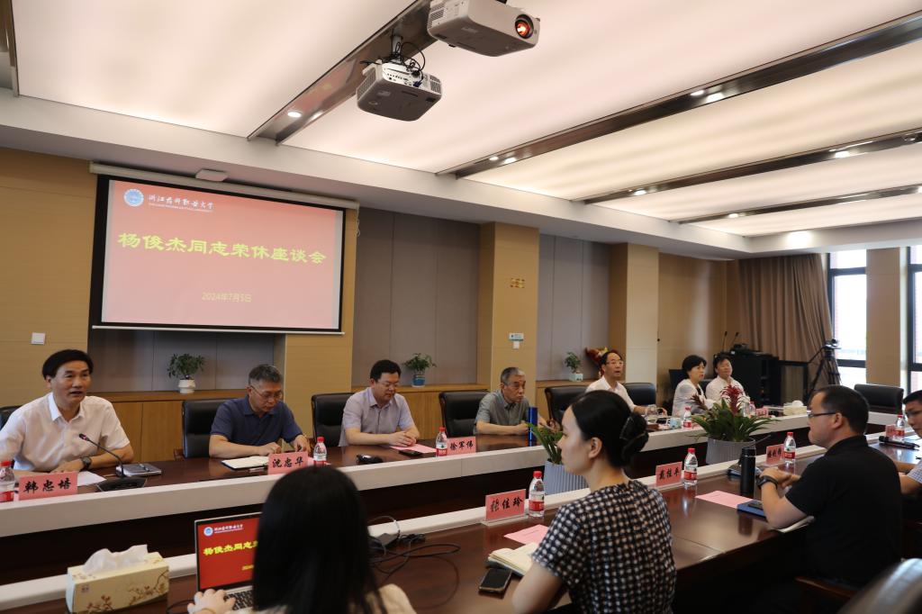 岁月如歌,共话情谊。7月5日下午,杨俊杰同志荣休座谈会在学校奉化校区行政楼举行,学校领导班子成员陈厥祥、徐军伟、许莉勇、沈忠华、沈黎新、韩忠培、楼剑锋、戴桂平等,以及组织部、办公室等相关部门负责人等参加了会议。