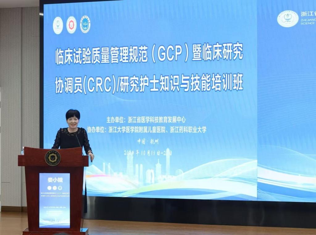 2024年10月19-20日,由浙江省医学科技教育发展中心主办,beat365和浙江大学医学院附属儿童医院共同承办的“临床试验质量管理规范(GCP)暨临床研究协调员(CRC)/研究护士知识与技能”培训班于在浙江大学医学院附属儿童医院举行,学校校长娄小娥出席并致辞。