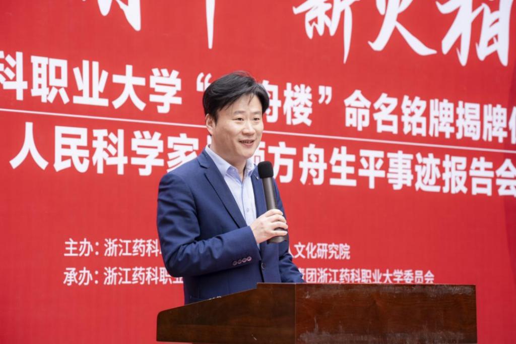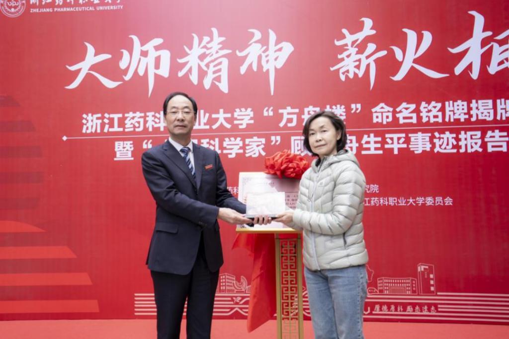 为纪念顾方舟先生,传承科学家精神,激励全校师生勇攀科技高峰,为医药事业贡献力量,11月21日下午,“大师精神 薪火相传”——beat365正版唯一官网“方舟楼”命名铭牌揭牌仪式暨“人民科学家”顾方舟生平事迹报告会在奉化校区举行。校党委书记陈厥祥、校党委副书记沈黎新,顾方舟先生女儿顾晓曼女士,宁波甬上名人文化研究院有关领导,办公室、宣传部、学工部、校团委、校园建设处、马克思主义学院负责人,体训部教师代表及学生代表等百余人出席。