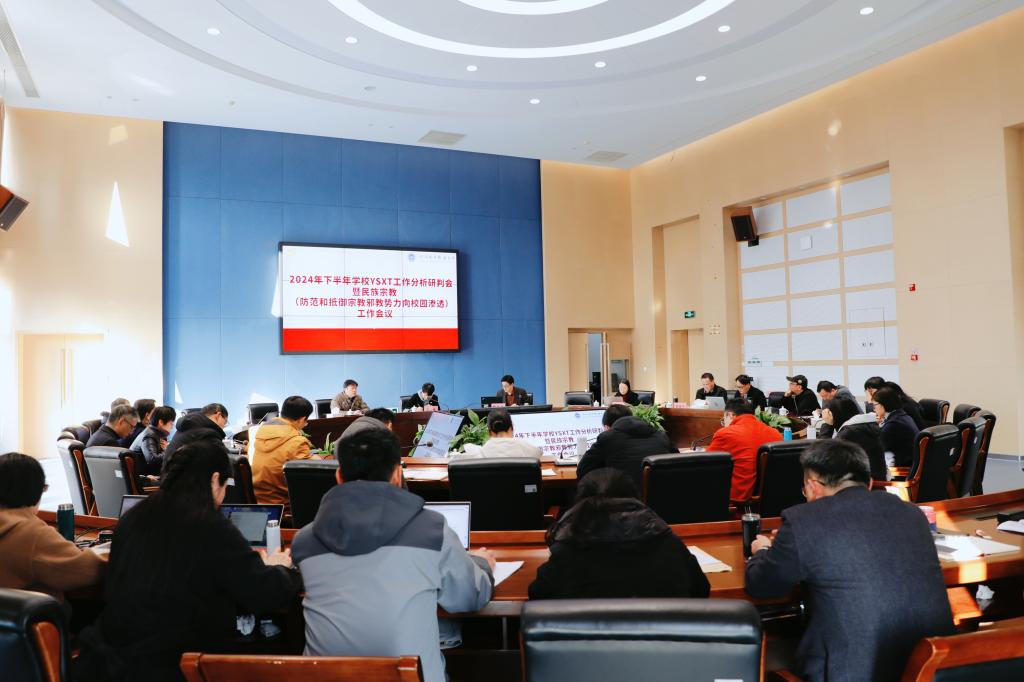 12月31日下午,beat365召开2024年下半年意识形态工作分析研判会暨民族宗教(防范和抵御宗教邪教势力向校园渗透)工作会议,深入学习领悟习近平总书记关于意识形态工作的重要论述,传达省市有关意识形态工作和民族宗教工作的重要文件精神、警示通报近期高校意识形态领域风险隐患,进一步明确目标定位,进一步压实主体责任,进一步筑牢安全防线,久久为功、持续用力,更好统筹发展与安全,为学校高质量发展保驾护航。