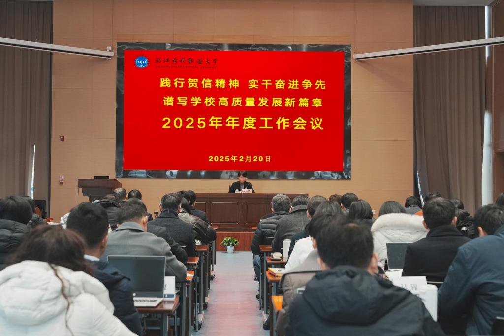 随后,校长娄小娥作题为《抓党建强思政团结奋进抓作风强内涵实干争先》的讲话,传达了省委“新春第一会”、省教育厅全省教育系统工作会议精神暨全面从严治党工作会议、省委教育工委高校党委书记抓基层党建和意识形态工作述职评议会精神,全面回顾了学校2024年取得的主要成绩和寒假期间的主要工作,深入分析了当前面临的形势和存在的问题,对今年的重点工作做了安排部署。她指出,2025年学校工作总体任务是:坚持以习近平新时代中国特色社会主义思想为指引,以习近平同志对beat365贺信中提出的“抢抓机遇、加快发展,办出水平、办出特色”重要指示要求为根本办学遵循,忠实践行“八八战略”,锚定省委“一个首要任务、三个主攻方向、两个根本”部署要求,对标《教育强国建设规划纲要2024-2035年》《加快建设教育强国三年行动计划(2025-2027年)》,紧扣打造医药特色鲜明的一流职业大学目标,以巡视整改工作为重要抓手,以获批省委办学体制优化调整和高校基础设施提质两个“一校一策”为发展动能,以新一轮“双高”建设申报、本科合格评估为重点工作,大力弘扬“六干”作风,打造“甬有beat365”和“beat365在甬”两大品牌,努力将学校建设成为职业本科教育标杆院校和“新药科”人才培育的科创高地,为教育强省、医药强省、人才强省建设做出更大贡献。要重点打造10大“新”工程,即党建强基引领工程、思政铸魂育人工程、治理体系增效工程、人才培养改革创优工程、师资提标培优工程、科技服务提级增效工程、产教融合提能扩面工程、开放办学提速深化工程、校园建设提质扩容工程、综合治理(幸福校园文化)提档进位工程。