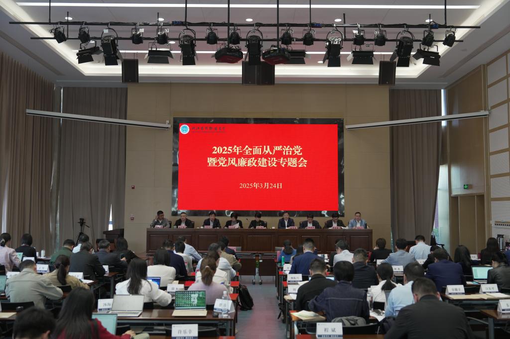 3月24日,学校召开2025年全面从严治党暨党风廉政建设推进会,会议总结回顾2024年工作,研究部署2025年任务。校党委副书记、校长娄小娥出席会议并讲话,校党委副书记沈黎新主持会议,在家校领导班子成员出席会议。