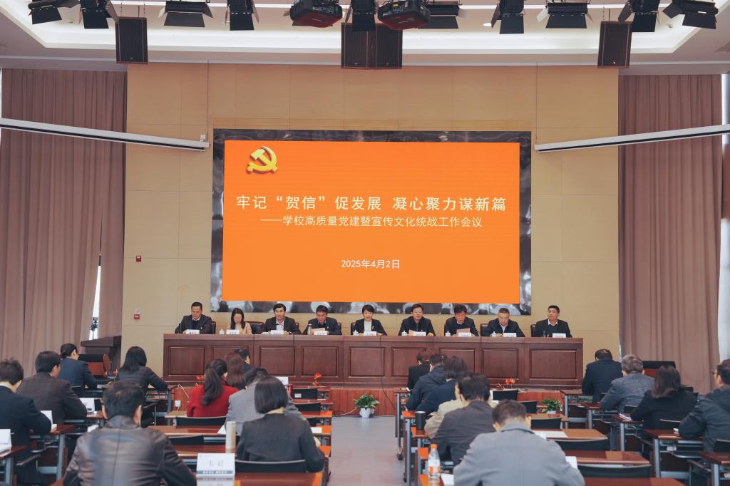 4月2日下午,学校召开高质量党建暨宣传思想文化统战工作会议,深入贯彻落实“贺信精神”,为学校高质量发展提供坚强的政治保障。校党委副书记、校长娄小娥在讲话中指出,切实增强做好党建宣传思想文化统战工作的自觉性和坚定性,以高质量党建引领学校高质量发展,为建设医药特色鲜明的一流职业大学提供坚强思想保证、强大精神力量和有利文化条件。党委副书记沈黎新主持会议。