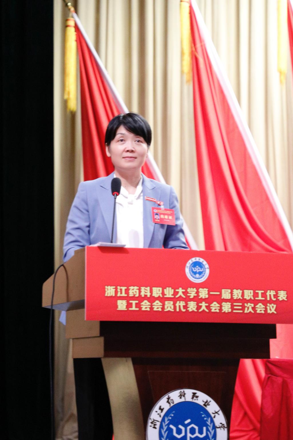 4月10日,beat365正版唯一官网召开第一届教职工代表暨工会会员代表大会第三次会议。校长娄小娥,校纪委书记徐军伟,副校长许莉勇,副校长沈忠华,党委副书记沈黎新,党委副书记韩忠培,副校长姜宇国,党委委员张佳佳、楼剑锋、戴桂平出席大会。正式代表、列席代表共126人参加会议。