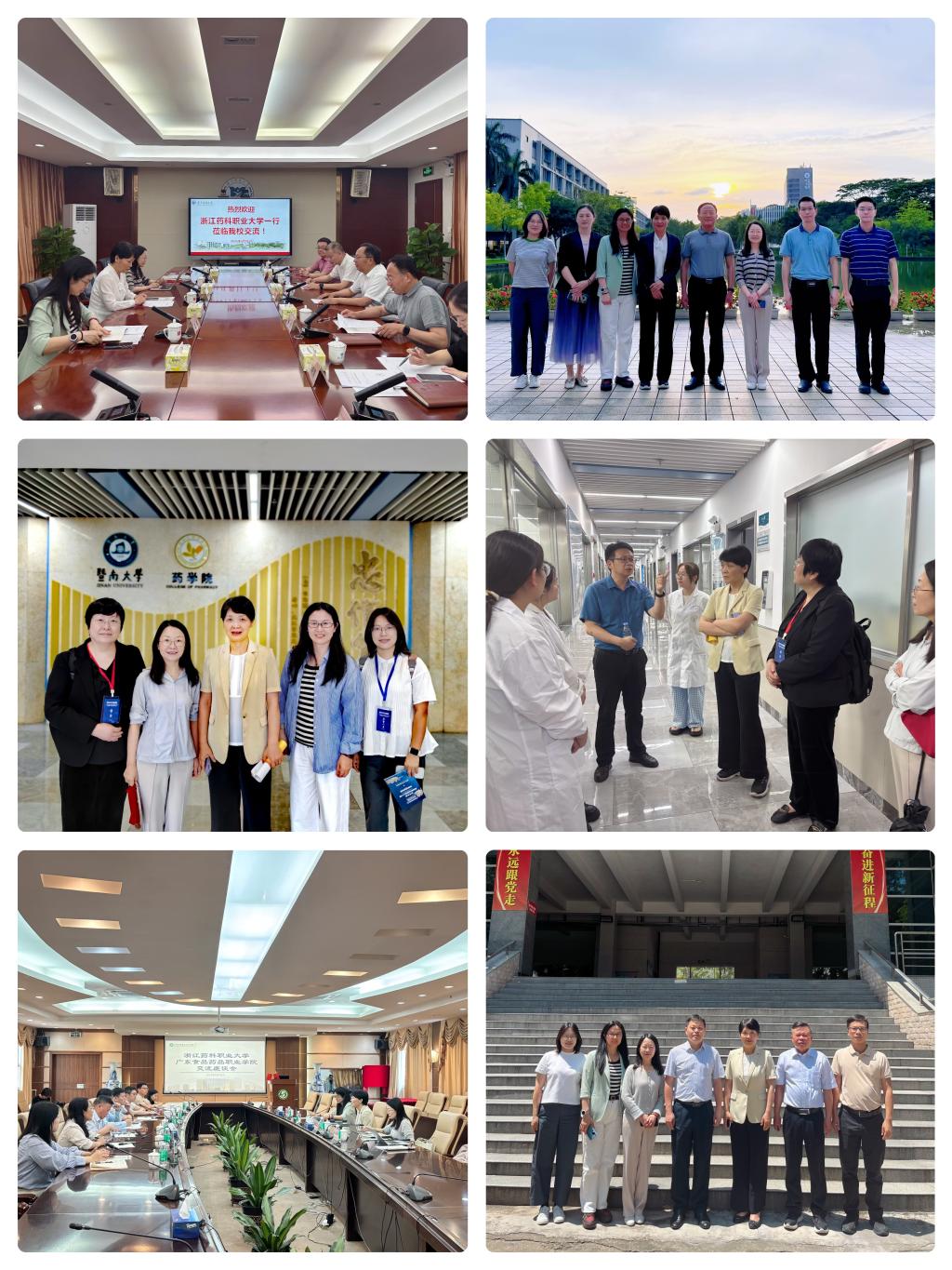 会议期间,娄校长率队赴广东药科大学和广东食品药品职业学院调研交流。广东药科大学重点分享了药学与中药学国家级一流专业建设成果,包括一流专业建设、开展专业认证,以及人工智能与大数据技术融入药学专业教学科研中的创新模式建设经验。广东食品药品职业学院介绍了国家“双高”专业群建设、国际化办学、现代学徒制等方面的特色经验,该校依托六大合作平台及境外办学点开发多项国际职业教育教学标准与培训资源包,输出中国特色药学教育资源。此次调研为学校省“双高”专业群建设、校企协同育人、国际交流合作等方面提供了宝贵的经验借鉴。