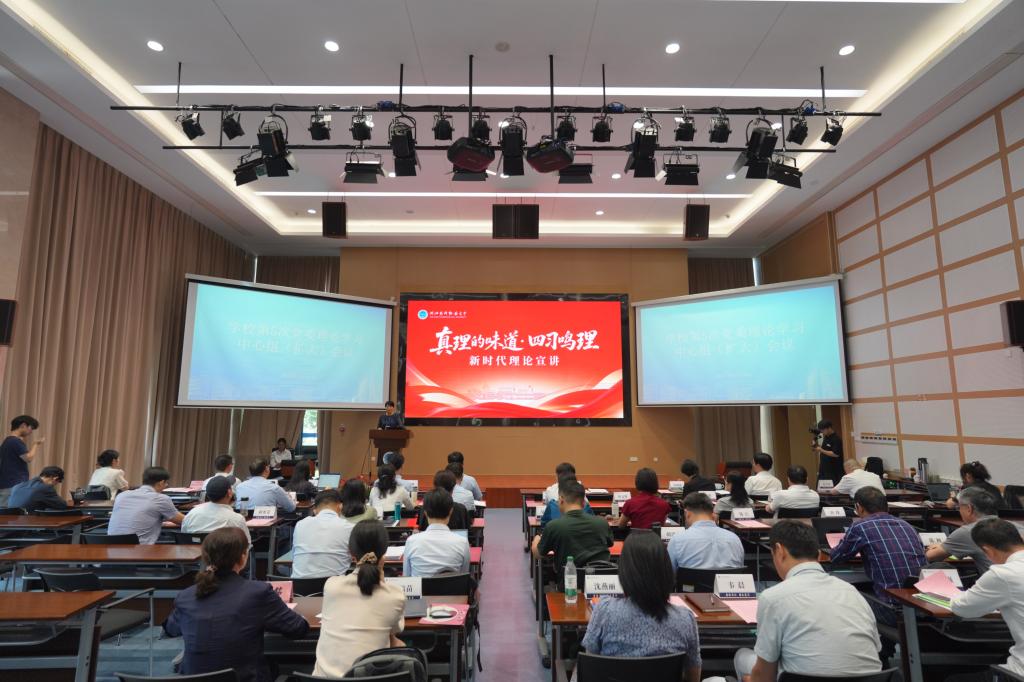 学校党委理论学习中心组成员、各二级学院及部门负责人、师生代表参加会议。