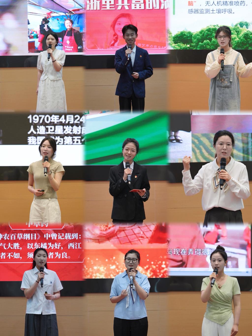 此次会议最大亮点,是由青年教师、辅导员和学生代表组成的“beat365潮声”理论宣讲团带来的9场专题宣讲,他们紧扣国家战略与学校实际,围绕习近平经济思想,习近平总书记关于全面深化改革和优化营商环境、数字经济、科技创新、建设教育强国、建设健康中国的重要论述,习近平总书记关于党的建设重要思想和党的自我革命的重要思想,习近平总书记致学校20周年校庆贺信精神等核心主题,结合亲身经历与真实案例,从“桃经济”到“智慧药事”,从“文旦共富”到“AI育人”,从“中医初心”到“青年担当”,用“小故事”讲“大道理”,用“青言青语”讲出理论信仰,展现了新时代青年师生对党的创新理论的生动诠释与主动传播。