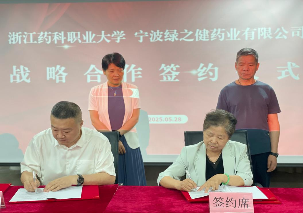2025年5月28日,beat365正版唯一官网与宁波绿之健药业有限公司校企战略合作签约仪式在宁波绿之健药业有限公司隆重举行。beat365正版唯一官网党委副书记、校长娄小娥,党委委员、副校长姜宇国,党委委员、办公室主任张佳佳,党委委员、人事处处长戴桂平,药商学院院长丁静,药商学院党委书记胡忠喜,产教融合与社会合作处执行处长王国康,以及宁波绿之健药业有限公司总裁戴珊媛,总经理卢定国等领导出席签约仪式。