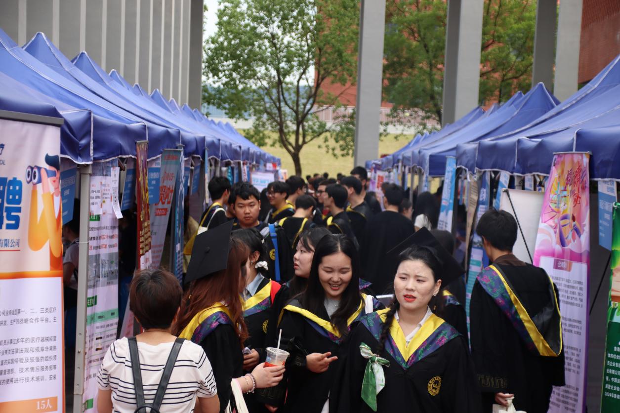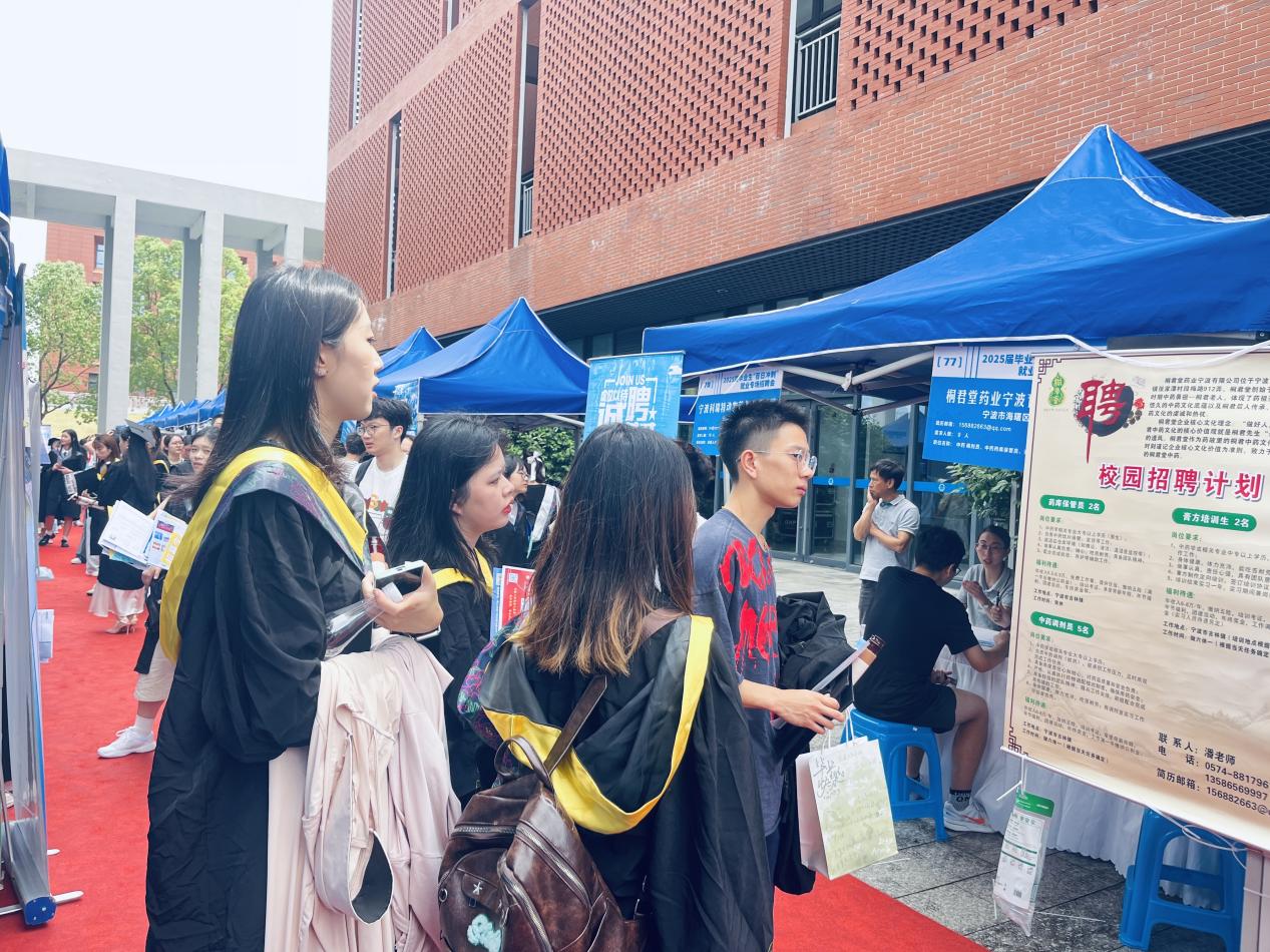 行业前景如何?初入职场如何规划?招聘会特别邀请13家由校友创办或担任高管的企业参会。毕业多年的学长学姐重返母校,为学弟学妹答疑解惑,介绍企业发展历程和职业发展路径。“临床协调员岗位今天收到很多简历,同学们积极性很高,老板特地安排我们今天来招聘更多同学加盟。”来自校友企业宁波厚载生物科技有限公司毕业生王雪荣、唐倩谈及留甬就业时难掩欣喜之情。