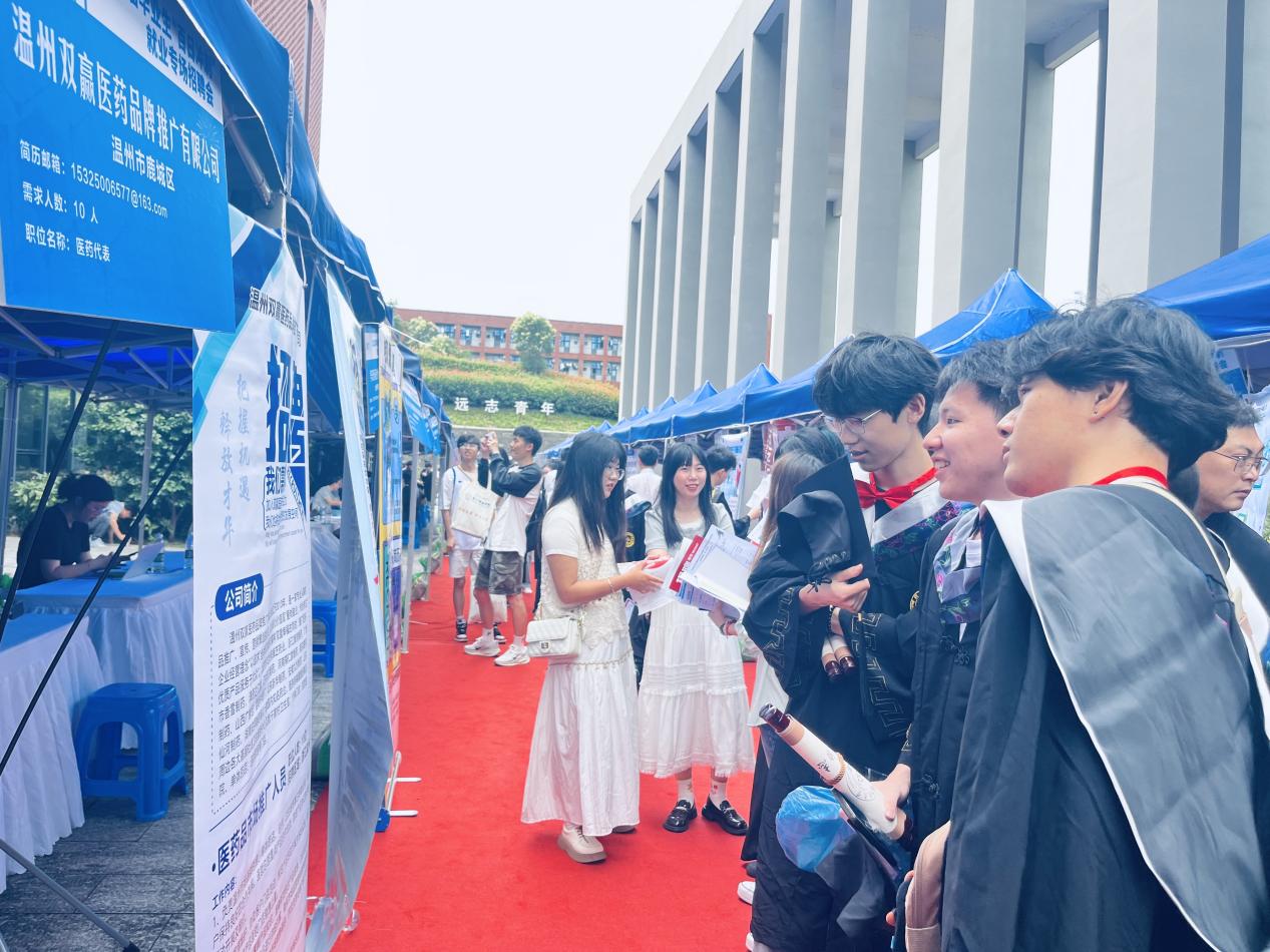 “把招聘会搬到毕业典礼现场。”学校党委副书记沈黎新在部署毕业生返校工作时强调,各专业学院要抢抓离校前促就业关键期,“急学生之所想,想学生之所盼”,加力拓展就业岗位。毕业生们拿着毕业证、穿着学士服投递简历、参加面试,一手捧毕业证、一手捧offer,成为本次招聘会的最靓“beat365style”。
