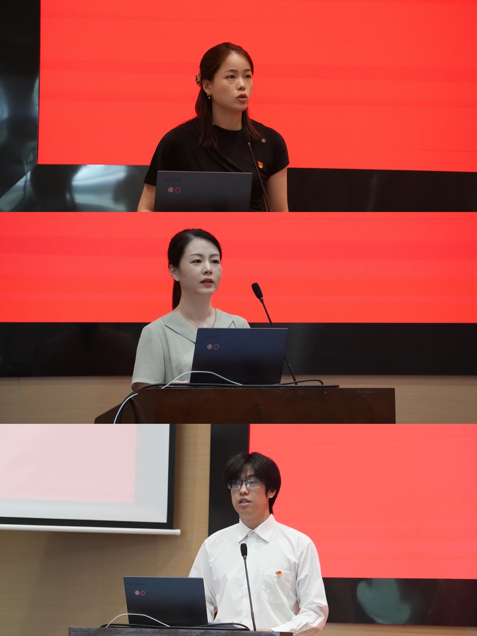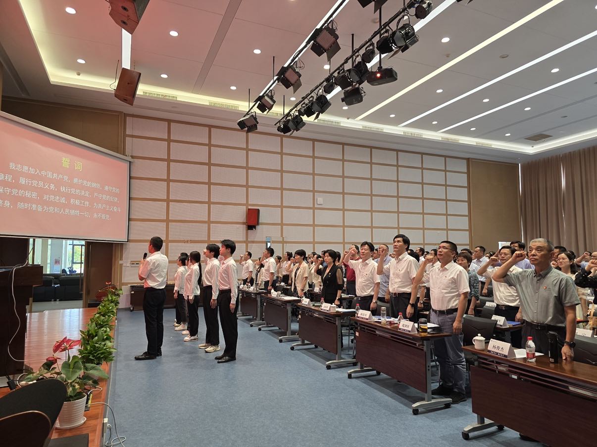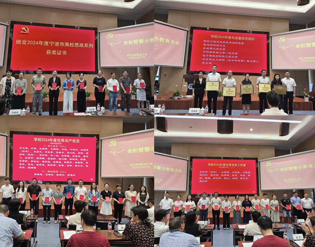 表彰会上,校领导们分别为浙江省高校优秀共产党员、浙江省高校优秀党务工作者、2024年度宁波市高校思政系列获奖者、学校先进基层党组织、优秀党务工作者以及优秀共产党员代表颁发了奖牌和荣誉证书。师生新党员进行了入党宣誓,全体党员也一起重温了入党誓词。学校新党员代表冯奕帆同学、优秀共产党员代表许乐幸老师、优秀党务工作者代表沈晓琦老师先后发言,分享了工作体会和获奖感悟。