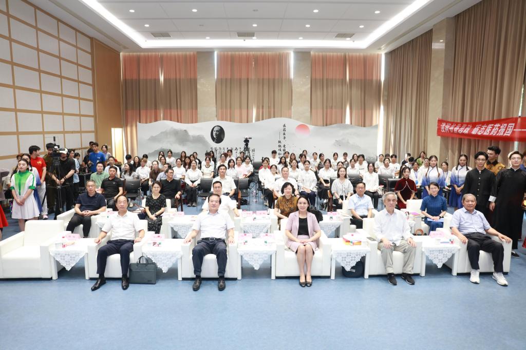 活动特邀项松茂之孙项秉仁先生作主题分享,通过多个家族记忆故事,讲述以祖父经历为原型的电视剧《泣血年流》,追溯“牙膏 131” 的历史渊源,解读家中悬挂的对联深意,勉励学生医药报国、立志成才。学生代表随后朗诵《项公松茂赞》,以青年之声传递医药报国之志、抗战爱国精神的时代回响。