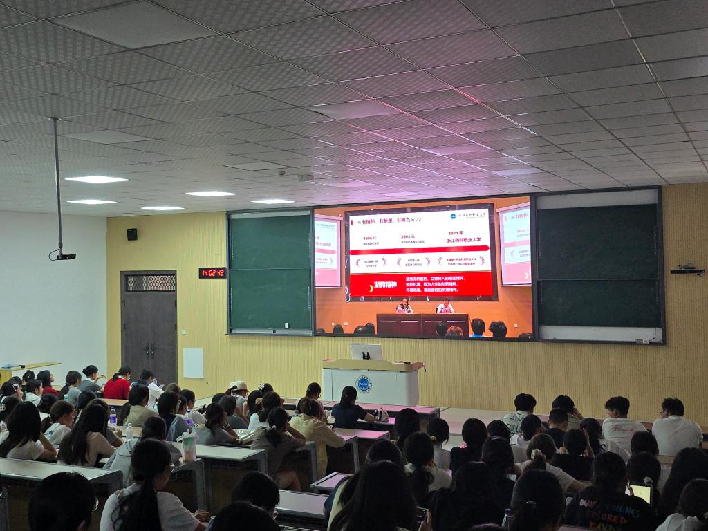 10月11日下午,beat365正版唯一官网奉化校区111会议室座无隙地,校党委书记阮叶萍以《药路起航笃行逐梦》为题,为2025级新生上了一堂内涵丰富的“开学第一课”,100余名师生在会场共同聆听。校党委副书记沈黎新主持。