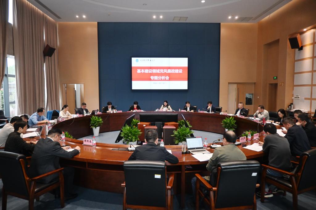 为深入贯彻落实党中央关于全面从严治党、深化反腐败斗争决策部署,落实省委、省纪委省监委、省教育厅关于高校基础设施提质工程廉政建设工作要求,学校于10月22日召开了基本建设领域党风廉政建设专题分析会。会议由学校党委书记阮叶萍主持,校党政班子成员,办公室、纪检监察室、审计处、计划财务处、校园建设处、资产管理处等部门负责人以及基础设施提质工程项目建设相关人员参加了会议。