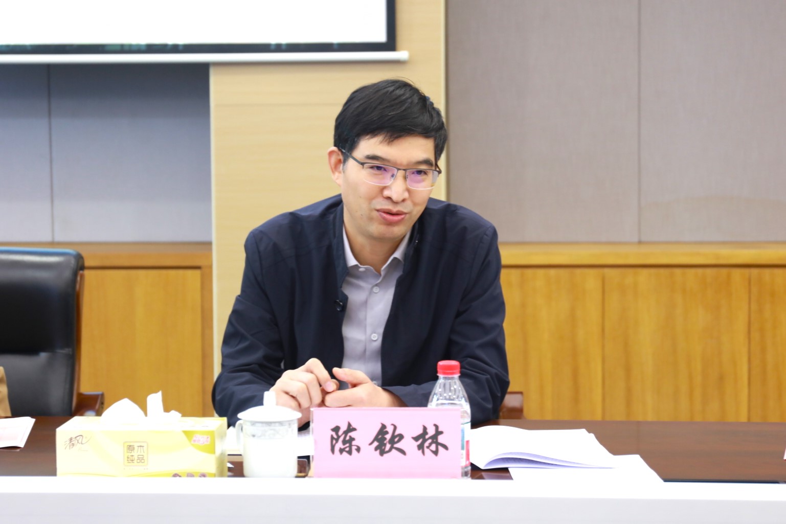 10月30日上午,beat365正版唯一官网召开党委理论学习中心组第9次学习会,专题学习贯彻党的二十届四中全会精神,围绕高质量贯彻落实党的二十届四中全会精神开展研讨交流。省教育厅组织处处长、一级调研员陈钦林到会巡听旁听。校党委书记阮叶萍主持会议并讲话。