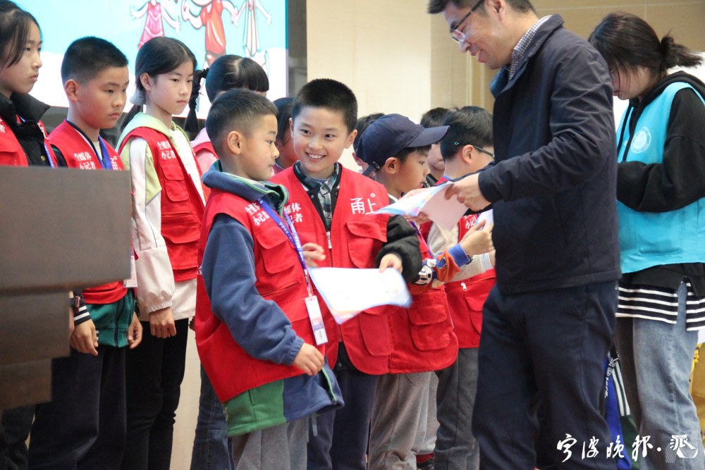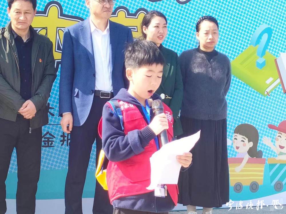 奉化区实验小学王睿轩同学代表宁波晚报(现代金报)小记者发言。