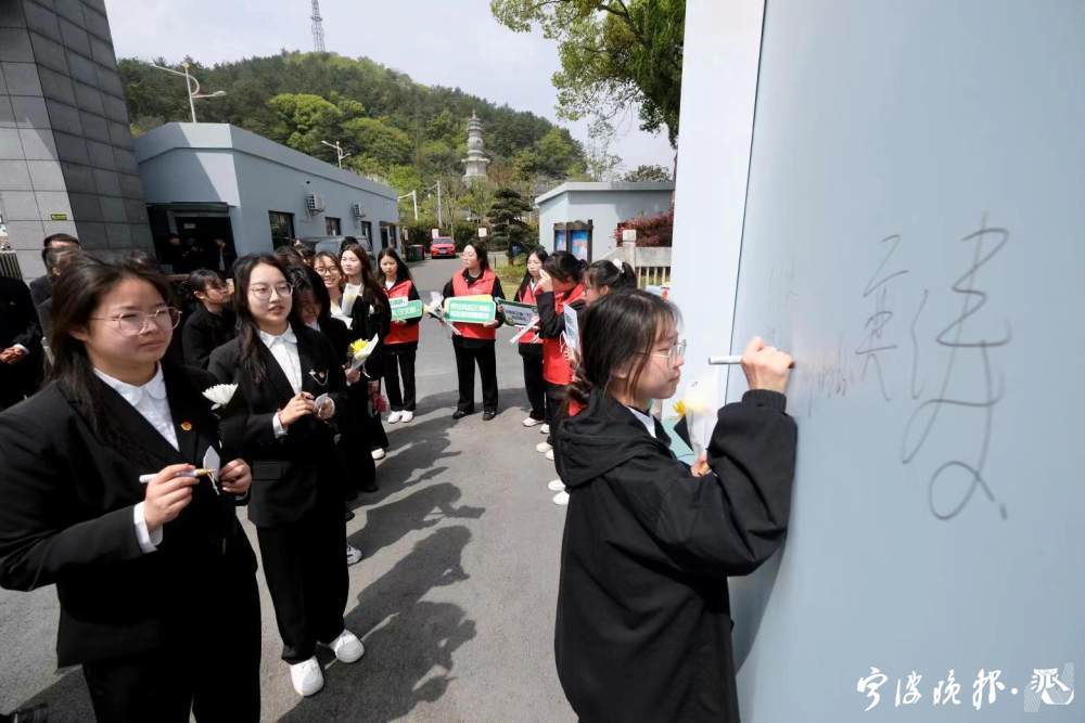 青年学子在奉化区烈士陵园开展活动。