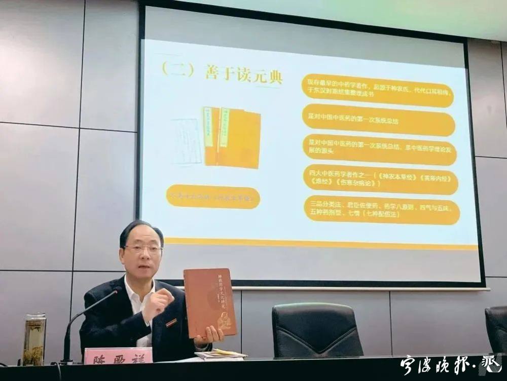 陈厥祥还介绍了宁波当地的中药学著作以及本土医药名人。“青春作伴好读书,最是药香能致远。”最后,陈厥祥勉励大家邃密药科、守正创新,弘扬神农精神、争做医药传人。